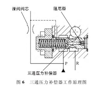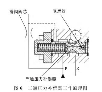定量泵系統中負載敏感多路閥轉換成變量泵負載敏感多路閥閥實(shí)質(zhì)***是讓前者中的三通壓力補償器失效,但又不影響其他油路。***直接的方法是,從三通壓力補償器中,取出彈簧,用墊片將閥芯墊死,使閥芯不能動(dòng)作來(lái)實(shí)現。如果對此器件在系統中的功能和其內部結構原理理解,則可知三通壓力補償器中有一個(gè)M5的阻尼器,如圖6為三通壓力補償閥工作原理圖。若將此阻尼器用M5的螺釘替代。從而切斷使閥芯趨于開(kāi)啟的控制壓力,亦可實(shí)現三通壓力補償器始終處于關(guān)閉狀態(tài),使其失效,從而實(shí)現二者轉換的目的。